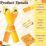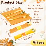 Lasnten Juego de 50 cubiertos de plástico dorado preenrollados de Navidad con 50 servilletas, 50