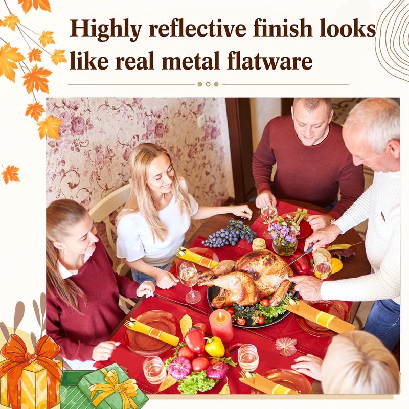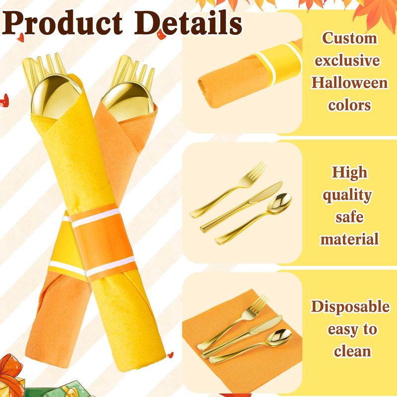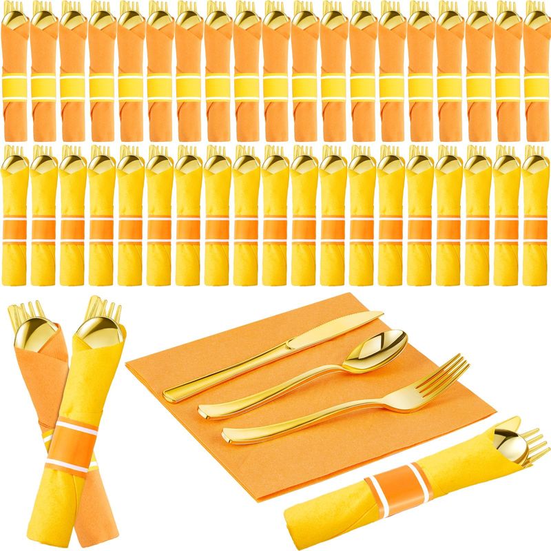 HOGARBAZARUTENSILIOS DE COCINALasnten Juego de 50 cubiertos de plástico dorado preenrollados de Navidad con 50 servilletas, 50