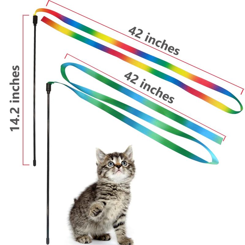 LASOCUHOO Juguetes interactivos de varita arcoíris para gatos, cuerda interactiva para gatos, cinta