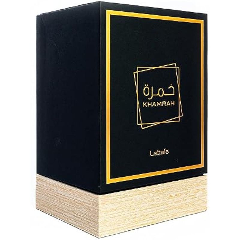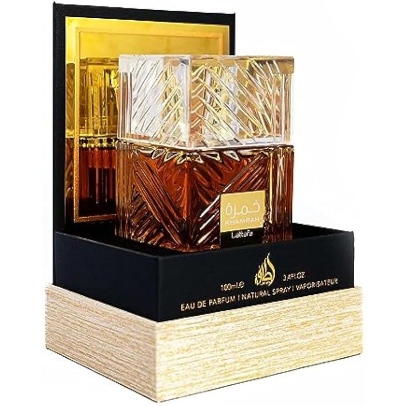 Khamrah de Lattafa Perfumes es una fragancia aromática picante para mujeres y hombres. Esta es una nueva fragancia. Khamrah se lanzó en 2022. Las notas de salida son canela, nuez moscada y bergamota; las notas medias son fechas, pralino, tuberosa y mahonial; las notas de fondo son vainilla, haba tonka, benjuí, mirra, madera de ámbar y Akigalawood.