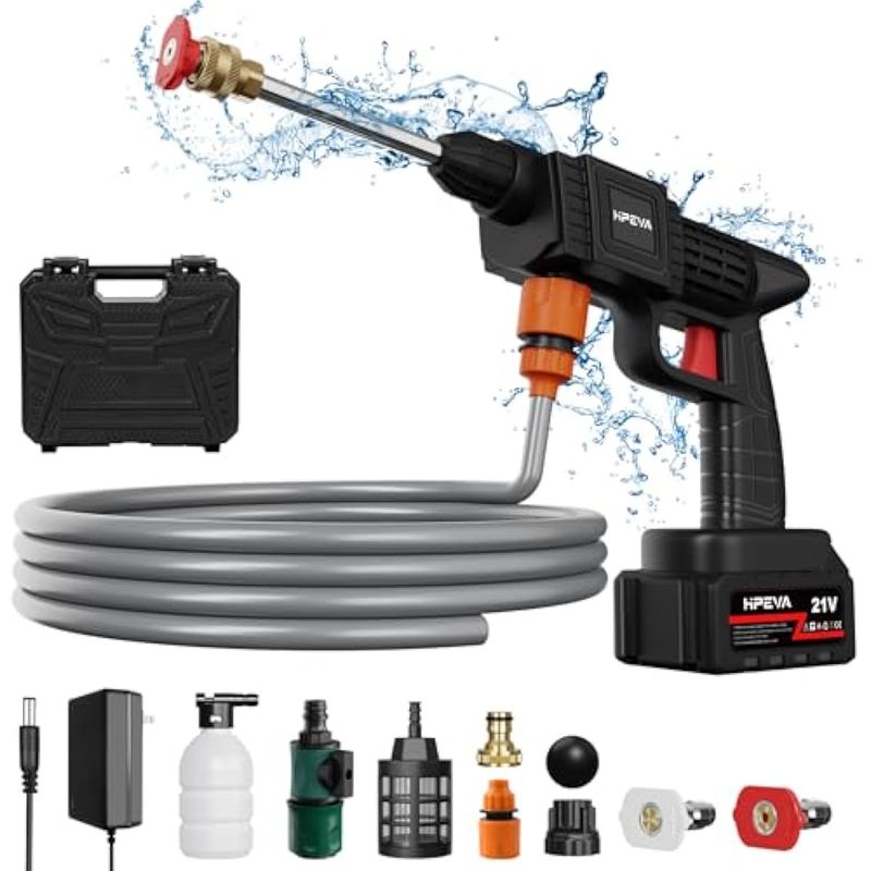 JARDÍNHERRAMIENTAS DE JARDINHIDROLAVADORASLavadora a presión inalámbrica, lavadora portátil con batería recargable de 4.0 Ah boquilla 6 en 1,