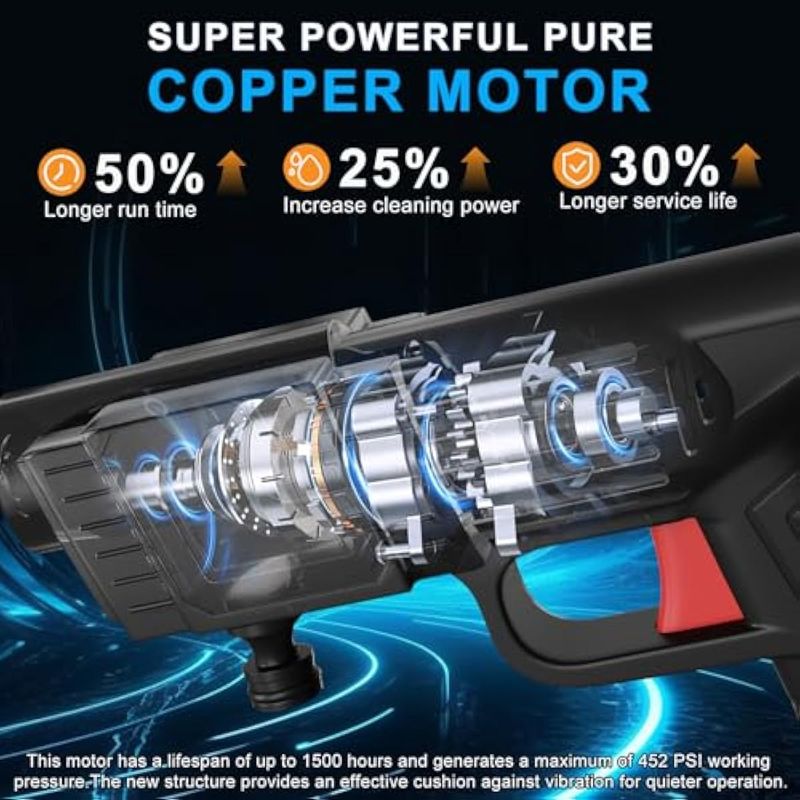 Lavadora a presión inalámbrica, lavadora portátil con batería recargable de 4.0 Ah boquilla 6 en 1,