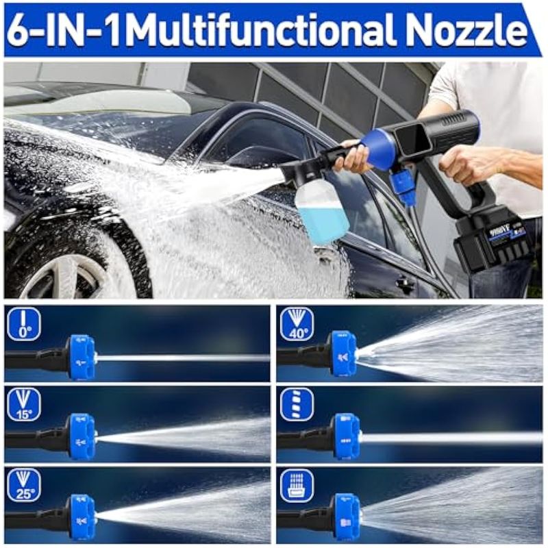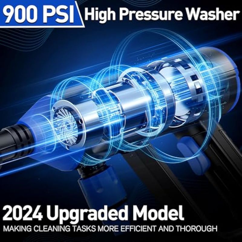 Lavadora a presión portátil de 900 PSI, inalámbrica, funciona con batería de 15000 mAh, pistola de