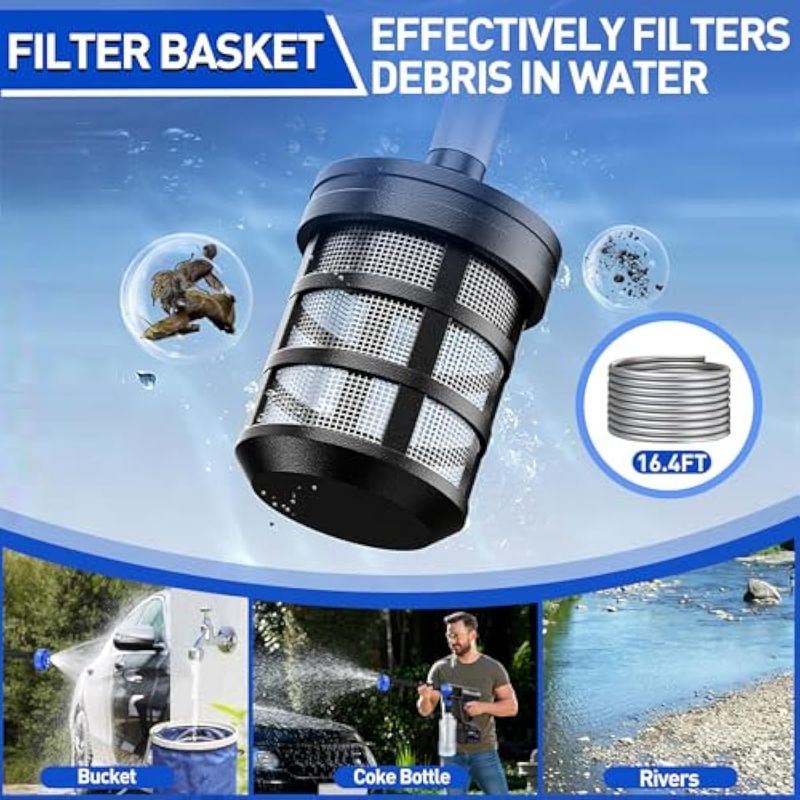 JARDÍNHERRAMIENTAS DE JARDINHIDROLAVADORASLavadora a presión portátil de 900 PSI, inalámbrica, funciona con batería de 15000 mAh, pistola de