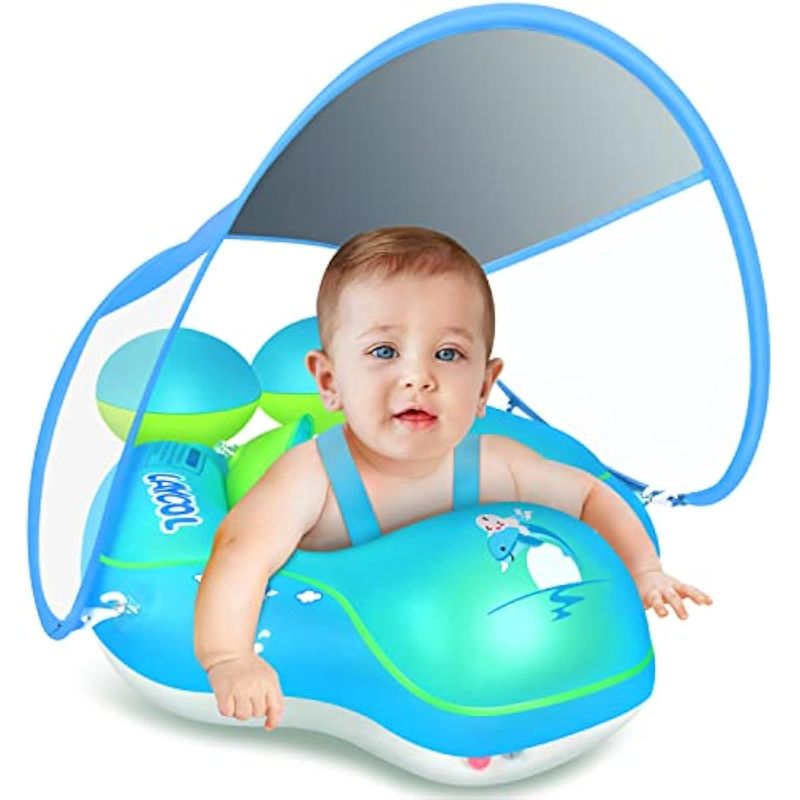 LAYCOL - FLOTADOR DE PISCINA CON TOLDO DE PROTECCIóN SOLAR UPF 50+ EXTRAíBLE, PARA BEBéS DE 3 A 36 MESES, ENTRENAMIENTO DE NATACIóN (AZUL, L)