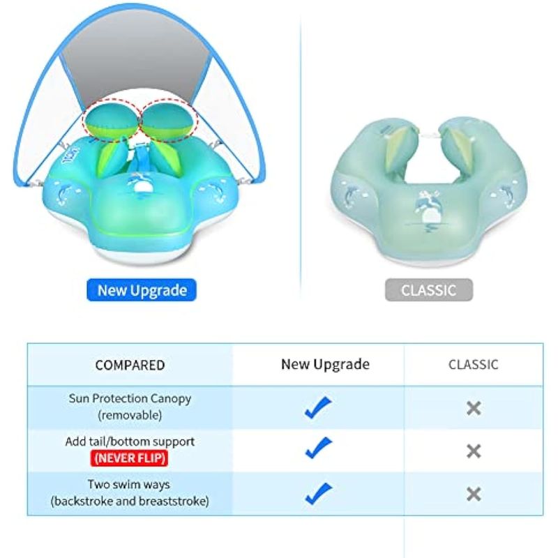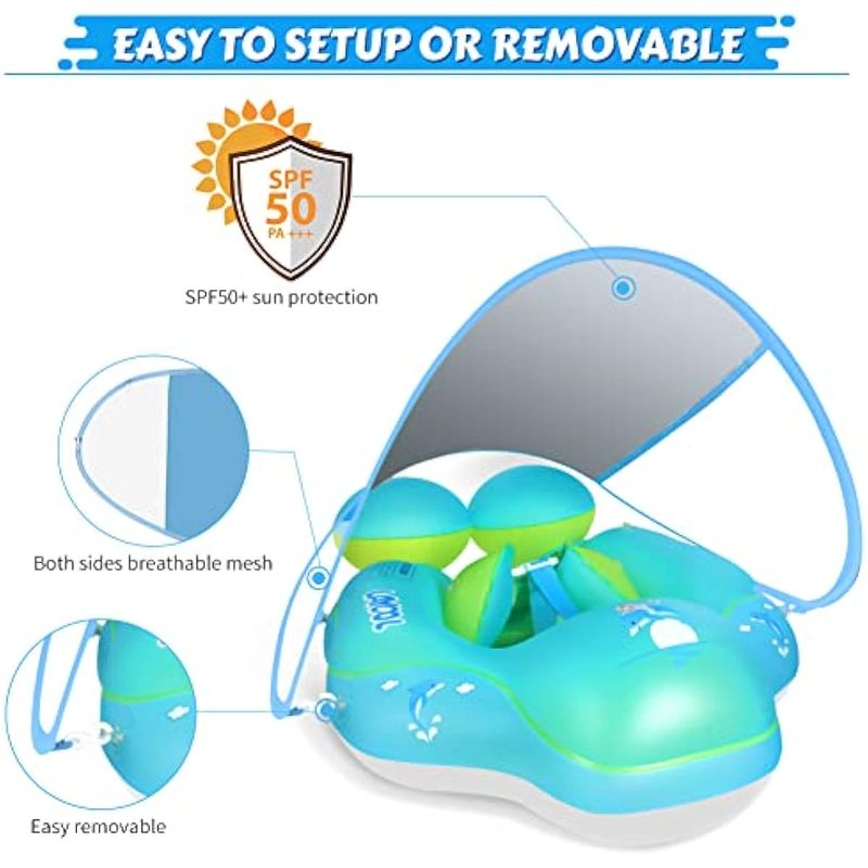 Toldo de protección solar: el flotador para bebé para piscina añade un toldo transpirable extraíble UPF50+ para proteger la piel del bebé lejos del sol, deja que el bebé se enamore de nadar en verano.