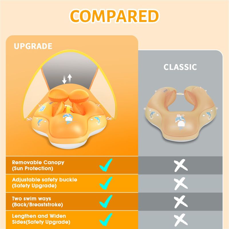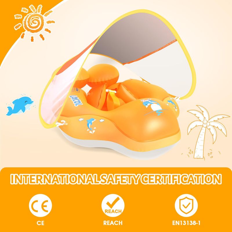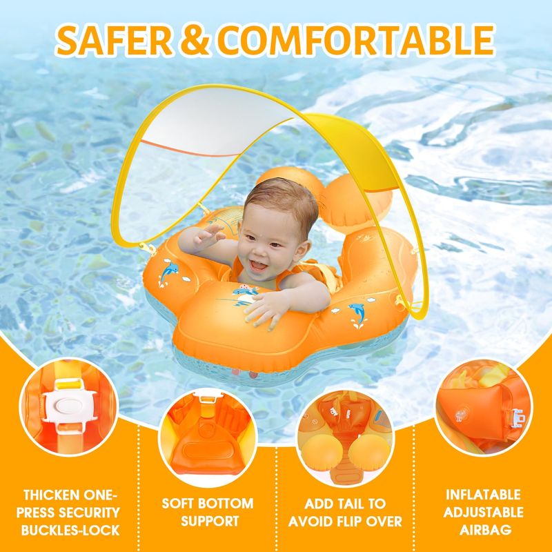 Toldo de protección solar: el flotador para bebé para piscina añade un toldo transpirable extraíble UPF50+ para proteger la piel del bebé lejos del sol, deja que el bebé se enamore de nadar en verano.