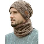 LCZTN Conjunto de gorro de invierno para hombre, bufanda con forro polar cálido, gorro de esquí de