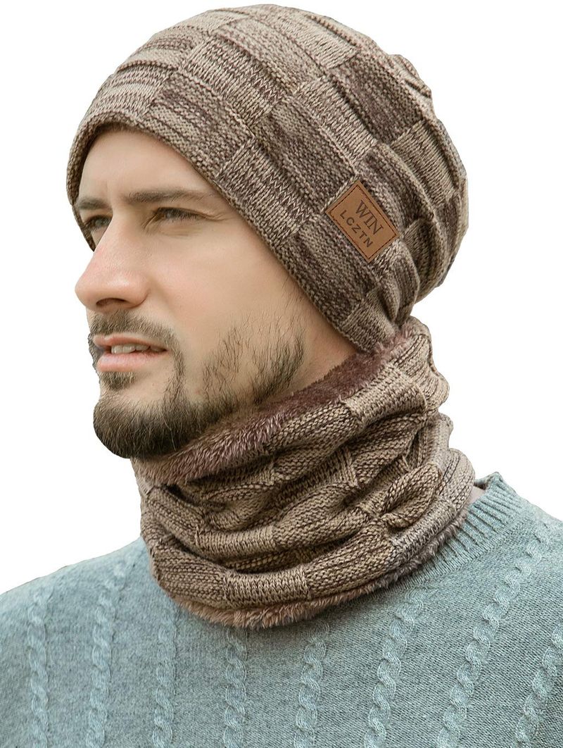 HOGARINDUMENTARIA Y ACCESORIOSLCZTN Conjunto de gorro de invierno para hombre, bufanda con forro polar cálido, gorro de esquí de