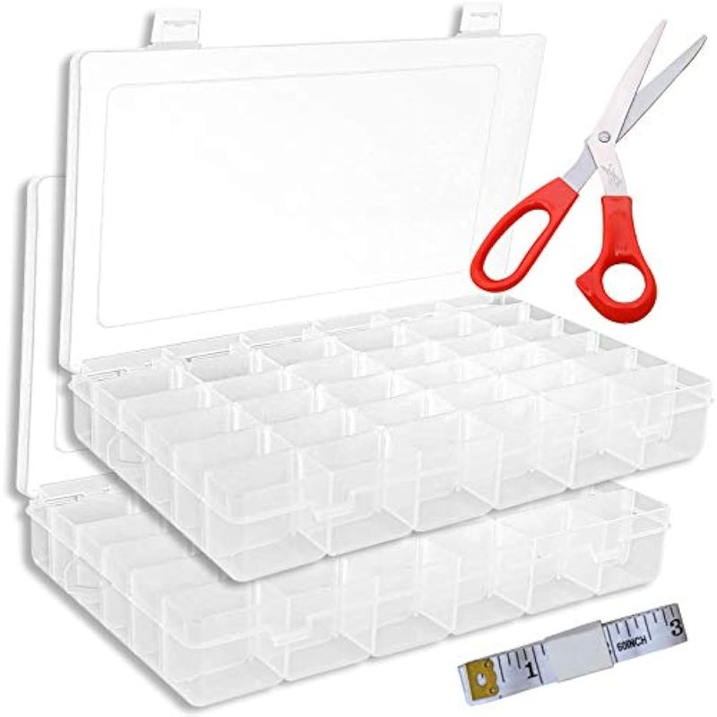 LE PAON PAQUETE DE 2 CAJAS ORGANIZADORAS DE PLáSTICO TRANSPARENTE DE 36 REJILLAS, CONTENEDOR DE ALMACENAMIENTO CON DIVISORES AJUSTABLES PARA CUENTAS, MANUALIDADES, JOYERíA, APAREJOS DE PESCA CON TIJERAS MULTIUSOS DE 8 PULGADAS, REGLA SUAVE