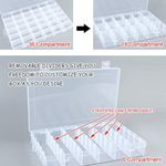 Especificaciones: el tamaño de la caja exterior es de 10.8 pulgadas de largo x 7.0 pulgadas de ancho x 1.8 pulgadas de alto, y el tamaño de la cuadrícula es de 1.7 pulgadas de largo x 1.1 pulgadas de ancho x 1.7 pulgadas de alto. Paquete de 2 cajas de almacenamiento desmontables de 36 rejillas, puede mover todos los divisores horizontales para obtener el tamaño del compartimento que desees.