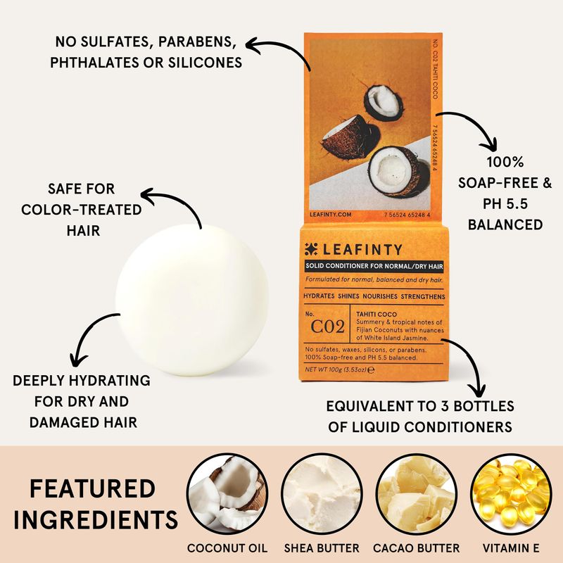Leafinty Barra acondicionadora sólida para cabello normal y seco que hidrata y nutre, sin sulfatos,