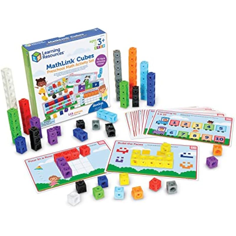 Learning Resources MathLink Cubes - Juego de actividades de matemáticas preescolares, 115 piezas, a