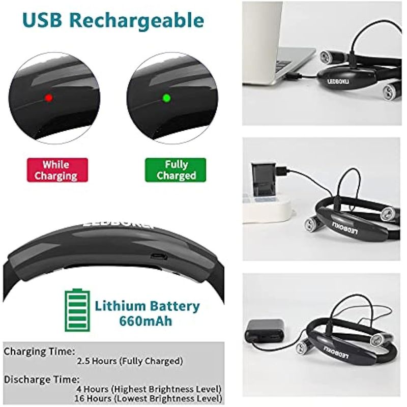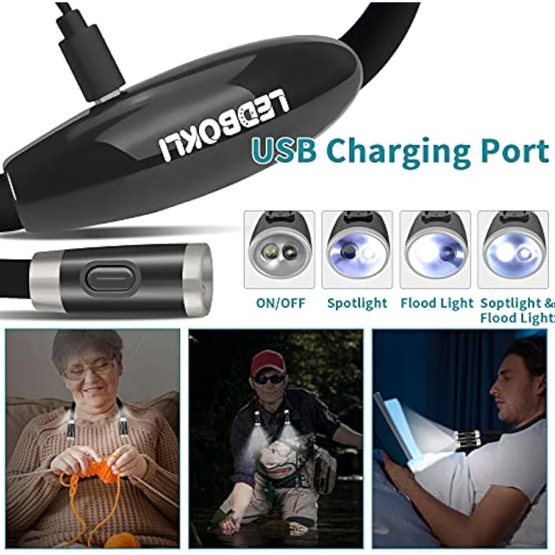 LEDBOKLI Luz de lectura para el cuello, luz de libro para leer en la cama, 6 niveles de brillo,