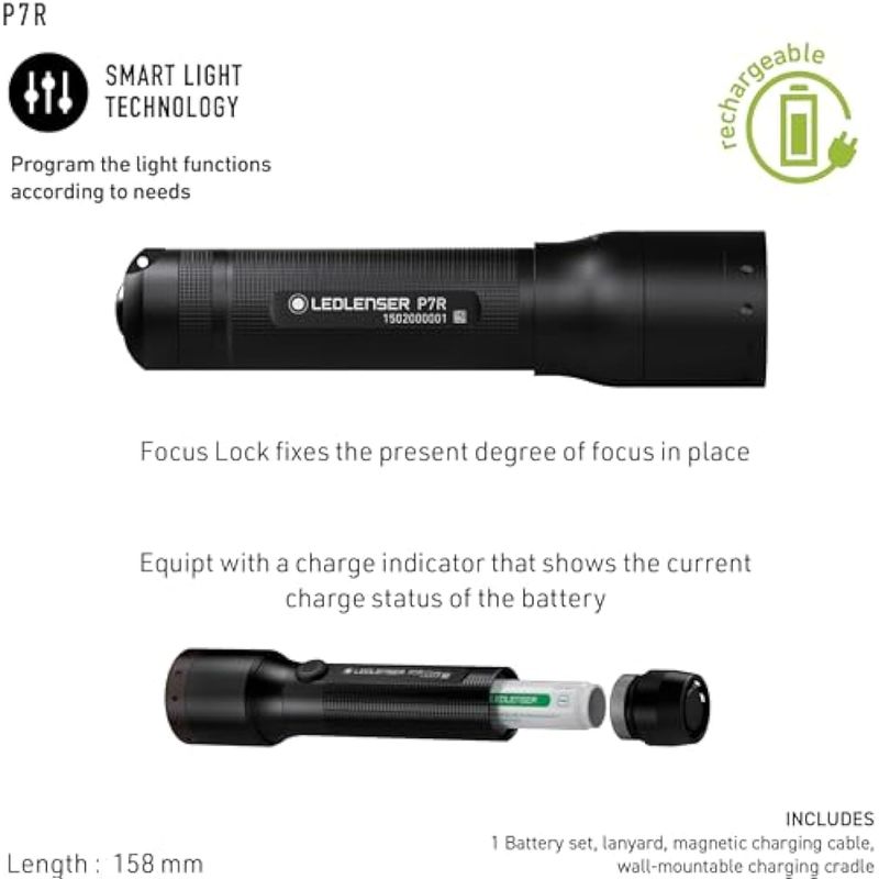 Ledlenser, Linterna recargable P7R, LED de alta potencia, 1000 lúmenes, luz para el hogar, camping,
