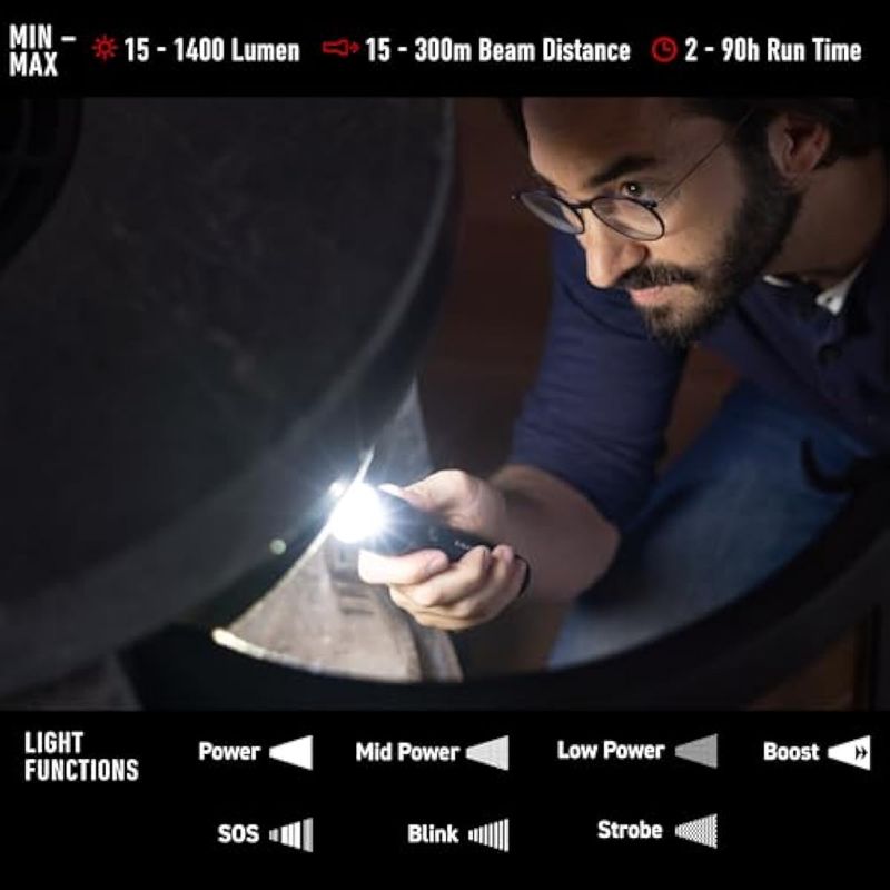 JARDÍNCAMPINGLINTERNASLedlenser, Linterna recargable P7R, LED de alta potencia, 1400 lúmenes, luz impermeable para el
