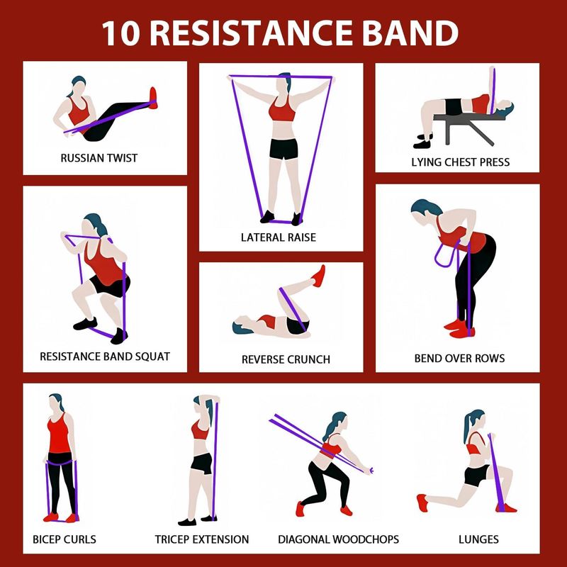 4 niveles de bandas de resistencia: Las bandas de asistencia para dominadas vienen en 4 niveles de resistencia, y cada color es diferente resistencia y ancho para diferentes propósitos. Banda roja 15 - 35 libras; banda negra 25 - 65 libras; banda morada 35 - 85 libras; verde 50-125 libras