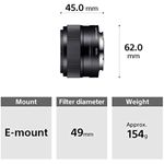 Lente fijo de 1.37" y f/1.8, de la marca Sony