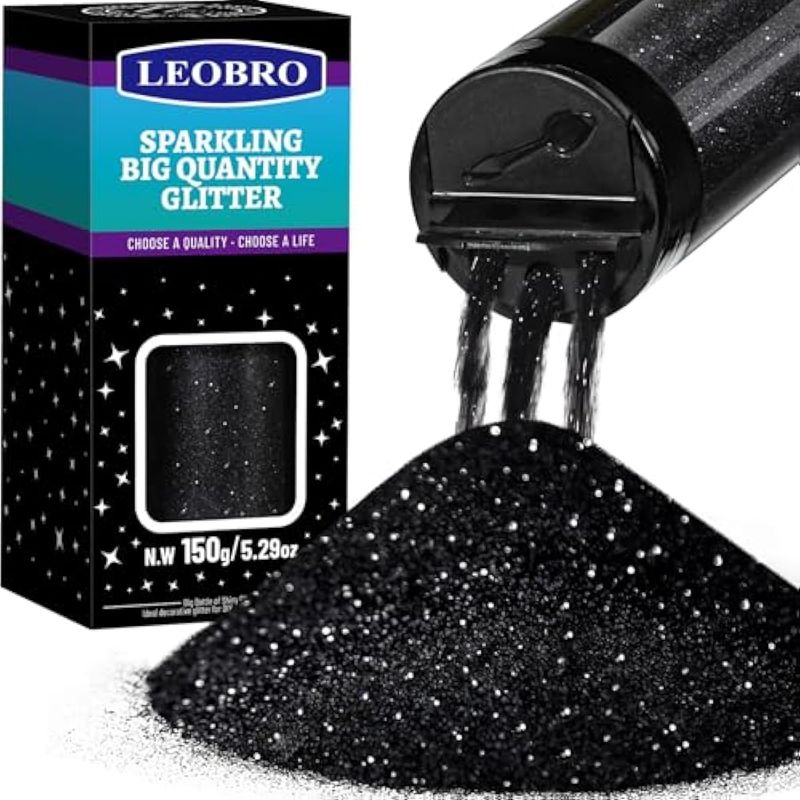LEOBRO BRILLANTINA, PURPURINA NEGRA, 5.29 ONZAS, PURPURINA FINA NEGRA PARA MANUALIDADES, PURPURINA NEGRA PARA MANUALIDADES, PURPURINA EXTRAFINA PARA MANUALIDADES DE RESINA, DECORACIóN DE HALLOWEEN,