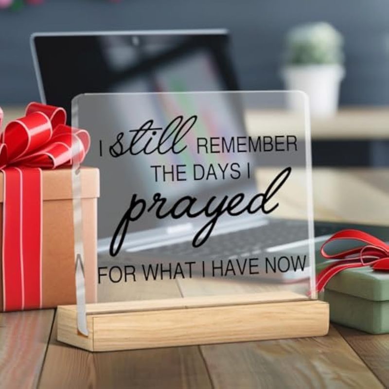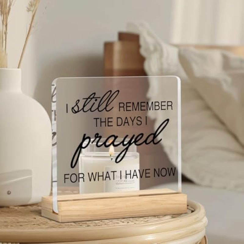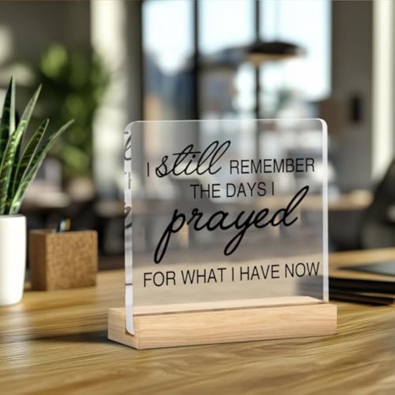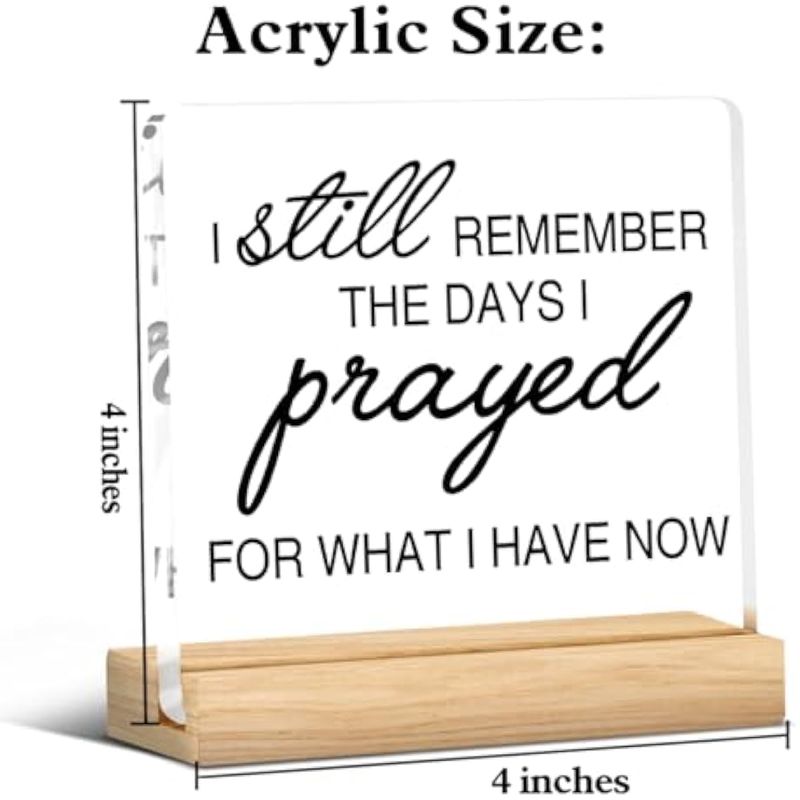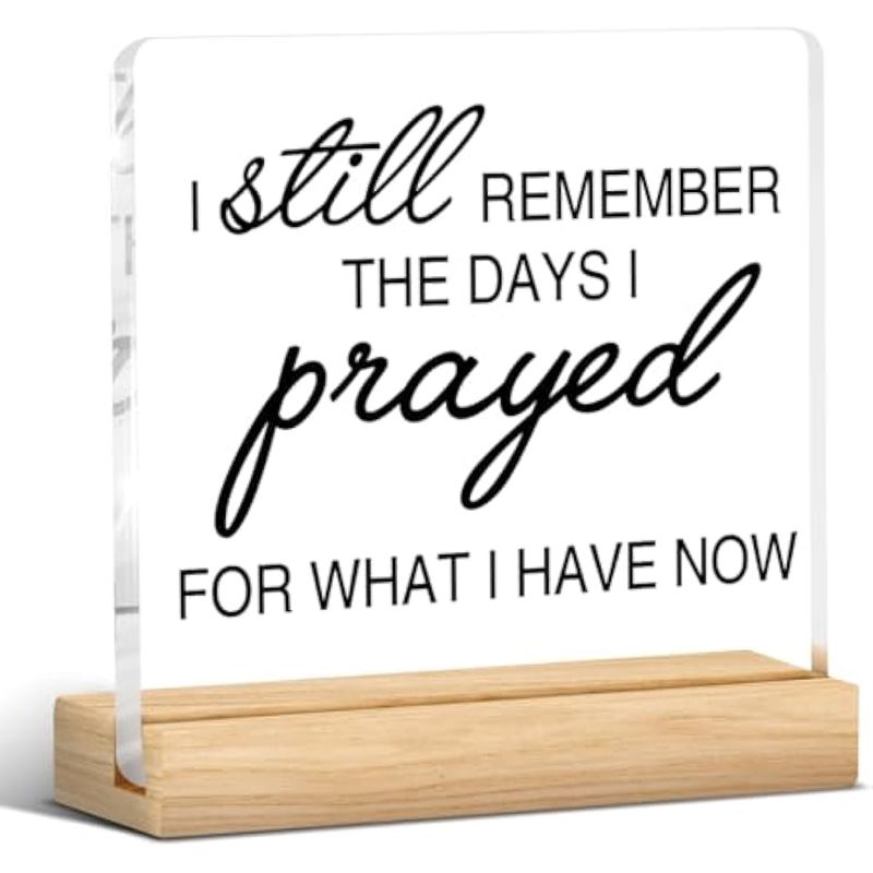 Letrero de escritorio con texto en inglés "I Still Remember the Days I Prayed, inspirador