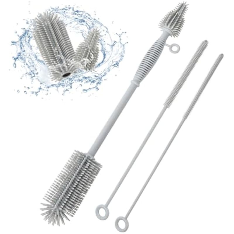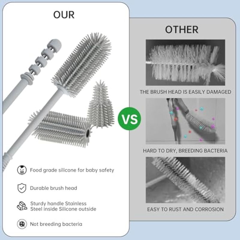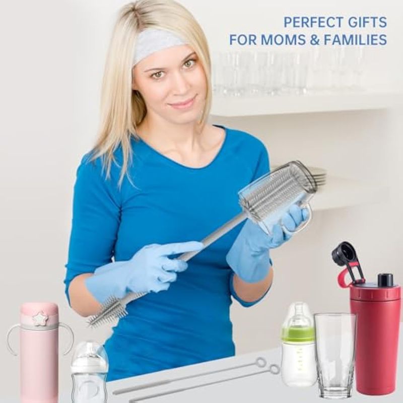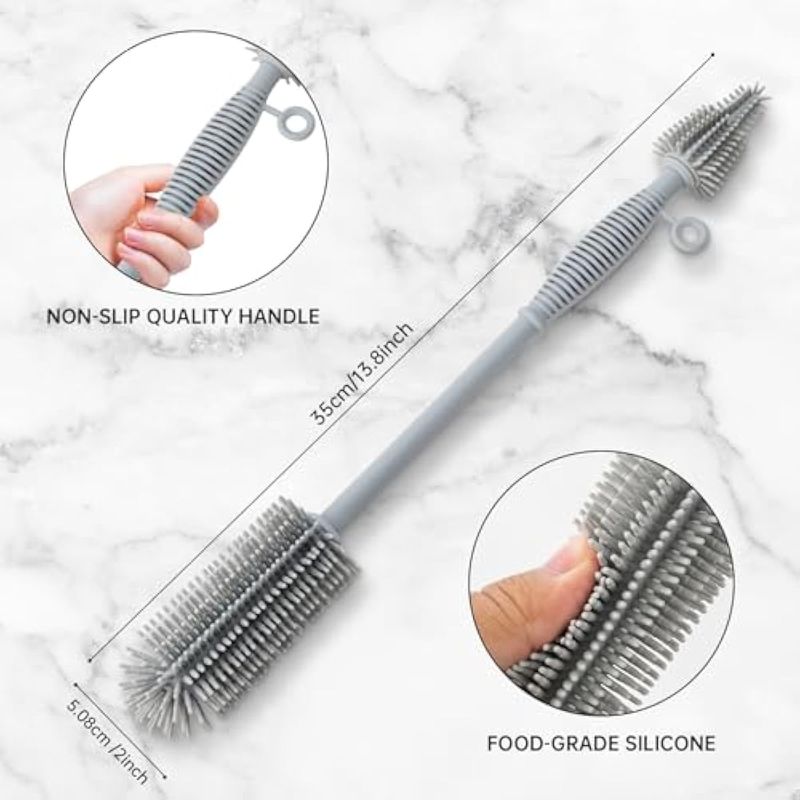 BEBES Y NIÑOSLACTANCIALeucite Bottle Brush and Straw Cleaner Brush Set, Extra Long Double-Ended Soft Silicone Brush