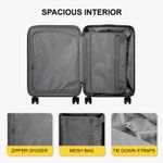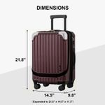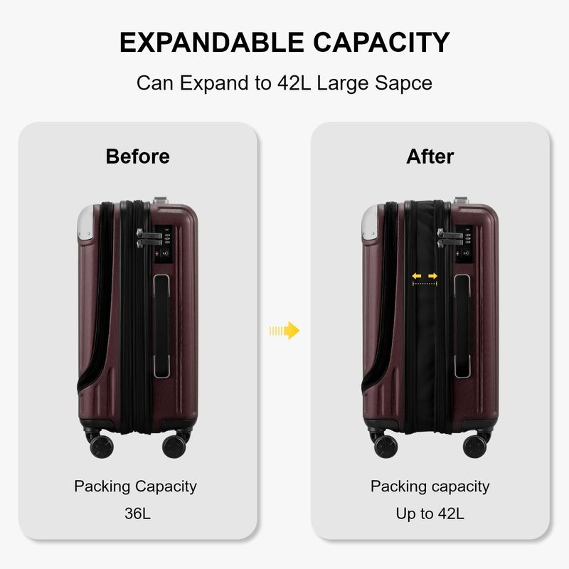 Dimensión total: 21.8" x 14.5" x 9.8" incluyendo ruedas y asas. Se expande un ancho adicional de 1.57 pulgadas. Peso: 9 lbs. Capacidad de embalaje: 36 L a 42L. Perfecto para viajes cortos de negocios.