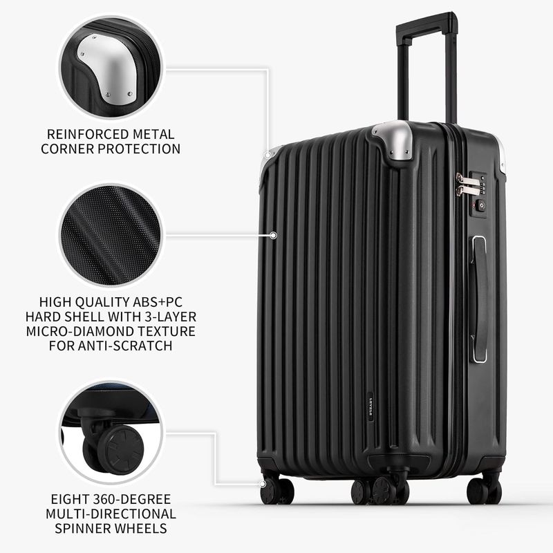 Dimensión total: 21.8" x 14.5" x 9.8" incluyendo ruedas y asas. Se expande un ancho adicional de 1.57 pulgadas. Peso: 9 lbs. Capacidad de embalaje: 36 L a 42L. Perfecto para viajes cortos de negocios.