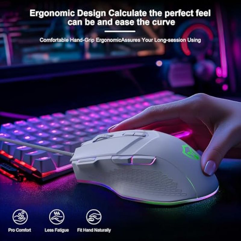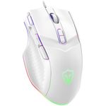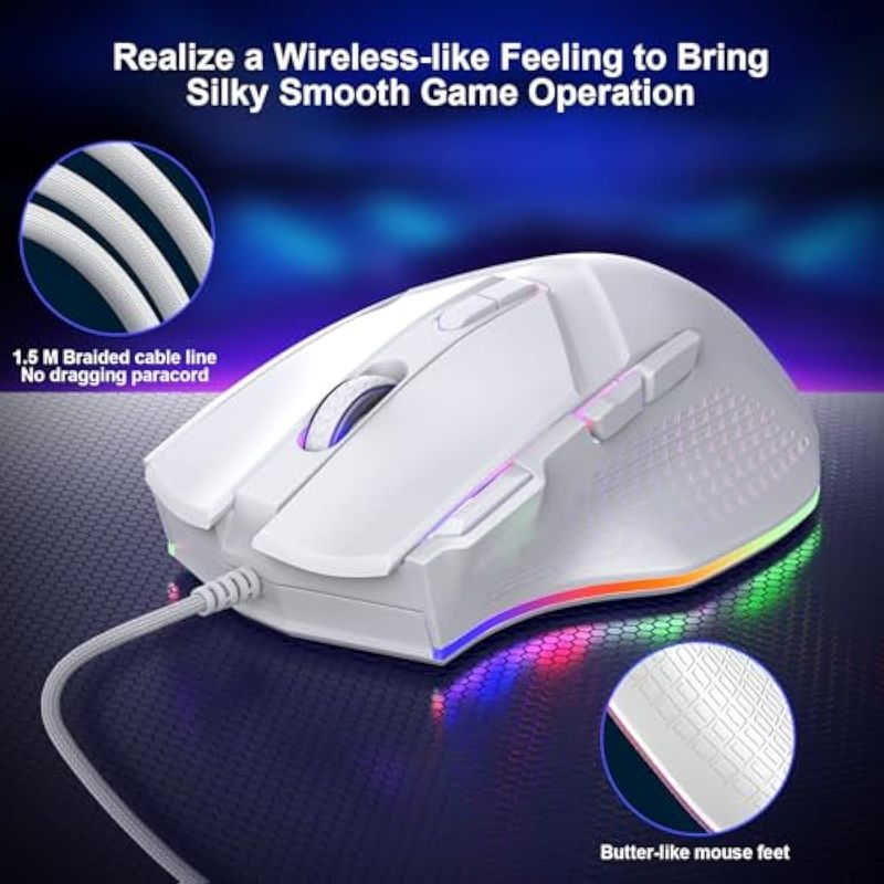 LEWENTECH Mouse para juegos de PC: mouse para juegos con cable de PC. El cable trenzado se utiliza para formar un cable de 4.9 ft de largo y 3 millones de clics para mayor durabilidad, la tecla de doble clic en la zona del pulgar adopta una textura antideslizante de polígono, y la precisión de funcionamiento a ciegas aumenta en un 60, diseño ergonómico que se adapta perfectamente debajo de tu palma, da a los jugadores la experiencia de juego más cómoda y te hace sentir libre de fatiga.