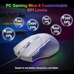 Sensible inteligente 6 niveles de DPI: mouse LEWENTECH para juegos con cable equipado con 6 niveles de DPI redefinibles por defecto como: 120018002400360048007200, según la configuración de preferencias del usuario, diferentes DPI y velocidad de rodadura adecuados para juegos, oficina y muchas ocasiones.