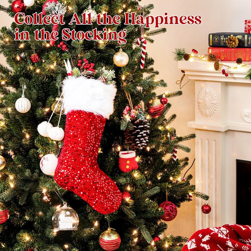 Lewondr Calcetín de Navidad con letra, calcetín de terciopelo de 20 pulgadas para Navidad, calcetín