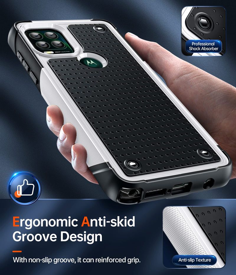 Exquisito diseño de doble capa: marco de poliuretano termoplástico suave y material de policarbonato duro, el interior de TPU tiene un delicado y suave efecto de absorción de impactos, que protege tu teléfono perfectamente. La carcasa trasera de policarbonato duro resiste impactos agresivos, y la protección de doble protección con esquinas reforzadas está especialmente diseñada para proteger tu nuevo teléfono.