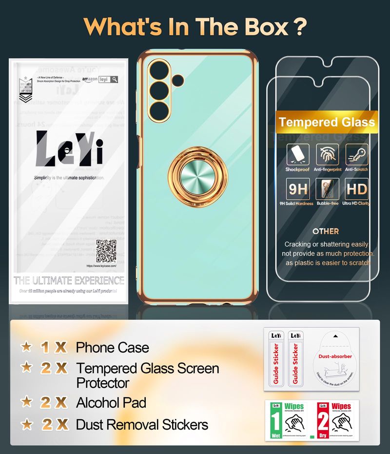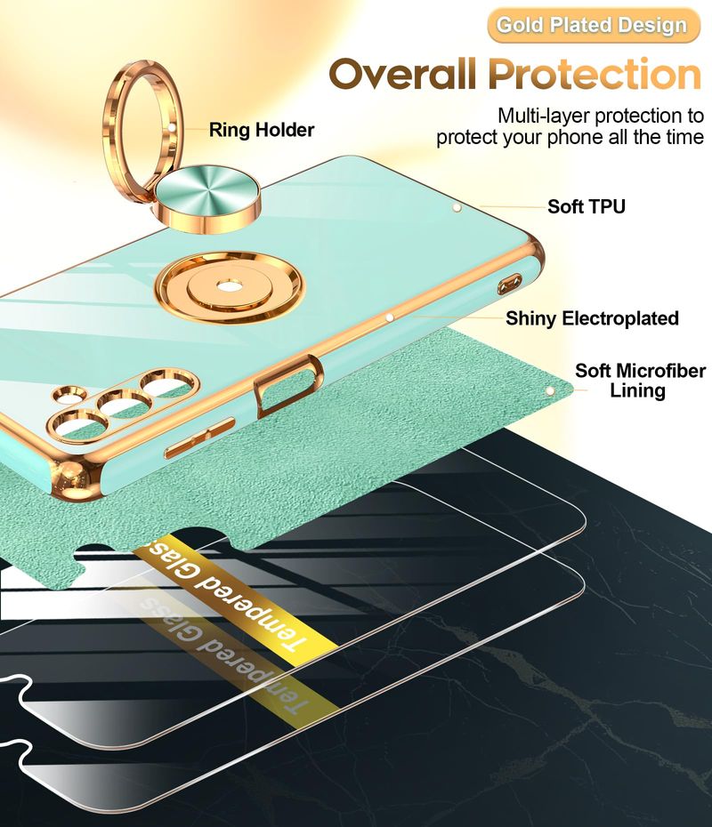 LEYI FUNDA PARA TELéFONO SAMSUNG GALAXY A13 5G: CON PROTECTOR DE PANTALLA DE VIDRIO TEMPLADO (PAQUETE DE 2) SOPORTE DE ANILLO GIRATORIO DE 360°, SOPORTE MAGNéTICO, CARCASA CHAPADA EN ORO ROSA CON BORDE DE ORO ROSA PARA SAMSUNG A13 5G, MORADO