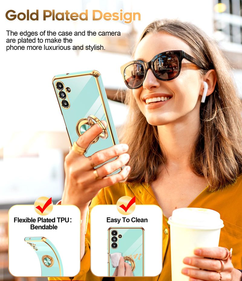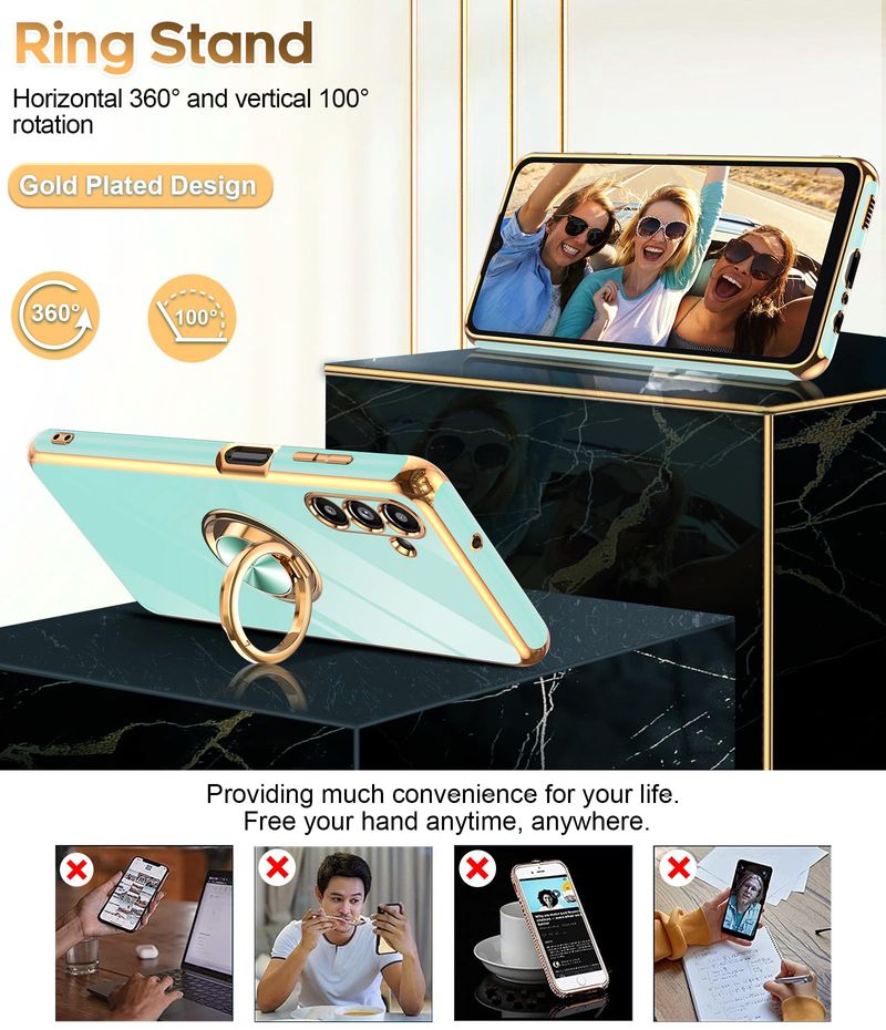 Diseño de soporte: el soporte de anillo integrado giratorio de 360° hace que sea fácil sostener el teléfono y funciona bien como un soporte para apoyar tu teléfono; esta bonita funda de anillo delgado puede satisfacer las necesidades de muchas escenas diferentes y es conveniente para la vida; y es adecuada para el montaje magnético del automóvil