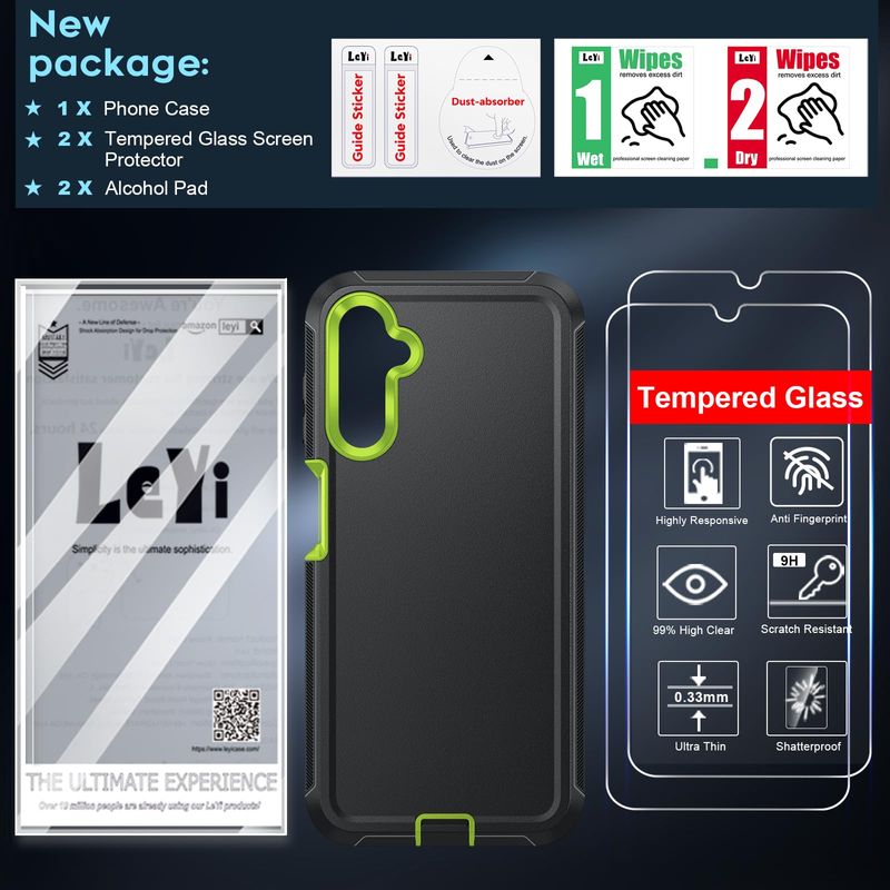 Incluye dos protectores de pantalla de vidrio templado: vidrio templado cortado con láser preciso, bordes redondeados exquisitamente pulidos. Claridad HD original y precisión de pantalla táctil. El protector de pantalla de vidrio templado con dureza 9H añade una capa adicional de protección muy necesaria para mayor tranquilidad, ofreciendo la máxima protección contra caídas, evitando arañazos y desgaste diario.