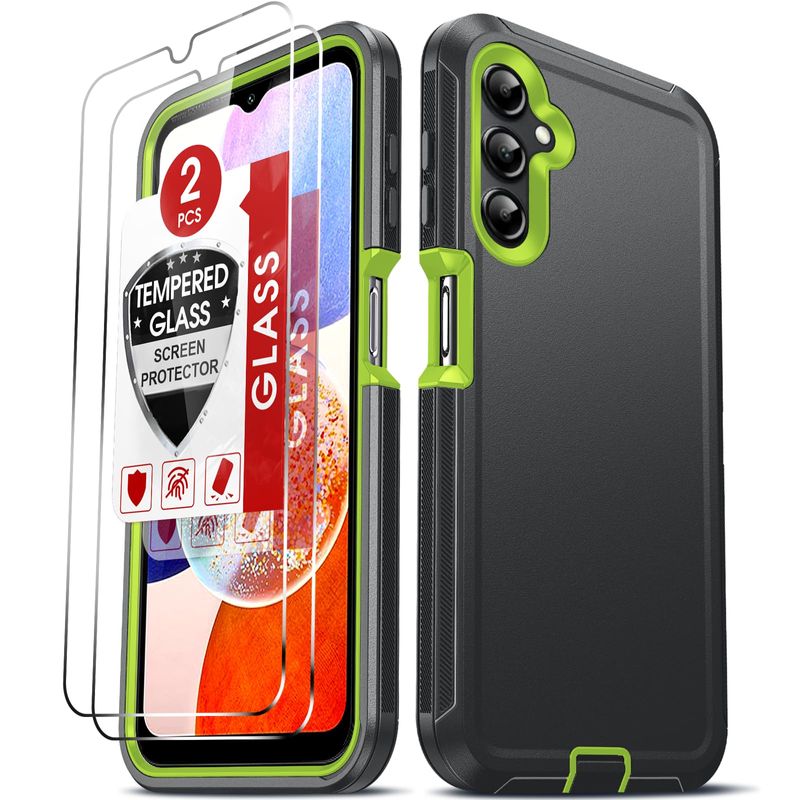 LEYI FUNDA PARA TELéFONO SAMSUNG GALAXY A14 5G: UNA FUNDA 14 5G CON [2 UNIDADES] PROTECTORES DE PANTALLA DE VIDRIO TEMPLADO, 3 EN 1 DE CUERPO COMPLETO A PRUEBA DE GOLPES DE GOMA A PRUEBA DE POLVO RESISTENTE PROTECCIóN DEFENSOR FUNDA A14, VERDE AZULADO
