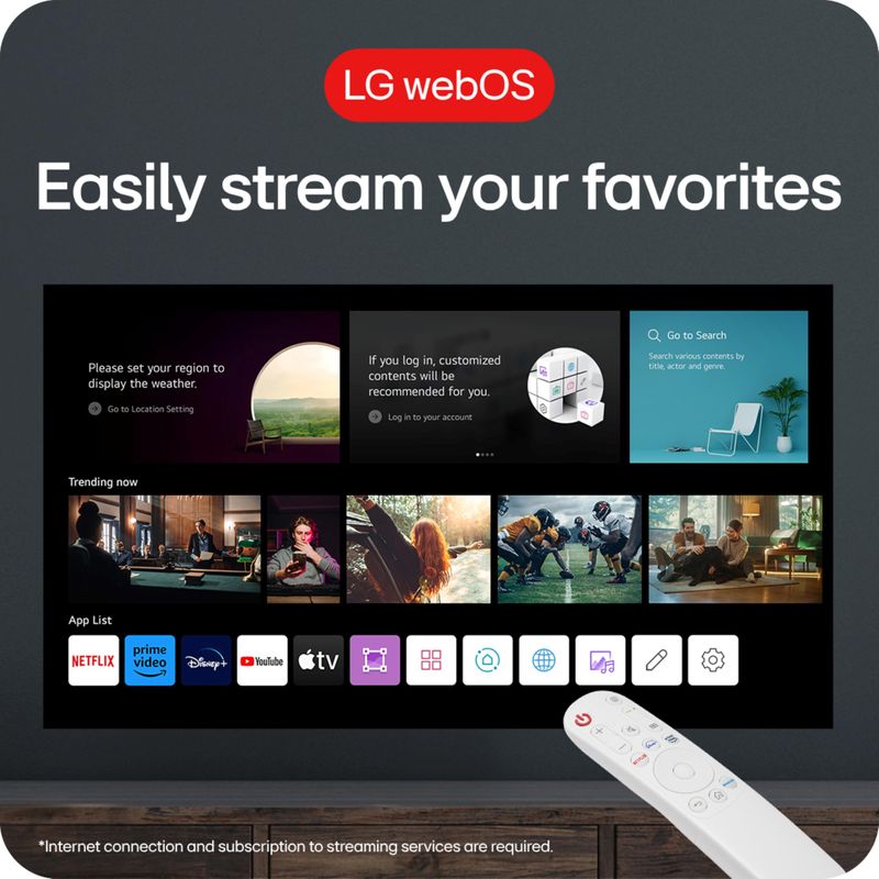 WebOS: transmite las últimas series de éxito y películas de gran éxito directamente desde tu proyector con webOS, compatible con plataformas populares como Netflix, Prime Video, Disney+, YouTube y Apple TV.