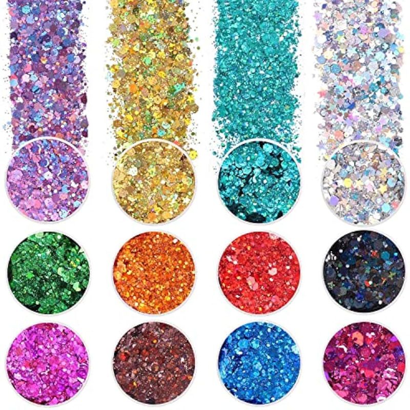 Licool - Brillantina gruesa holográfica, juego de 12, purpurina artesanal para manualidades de