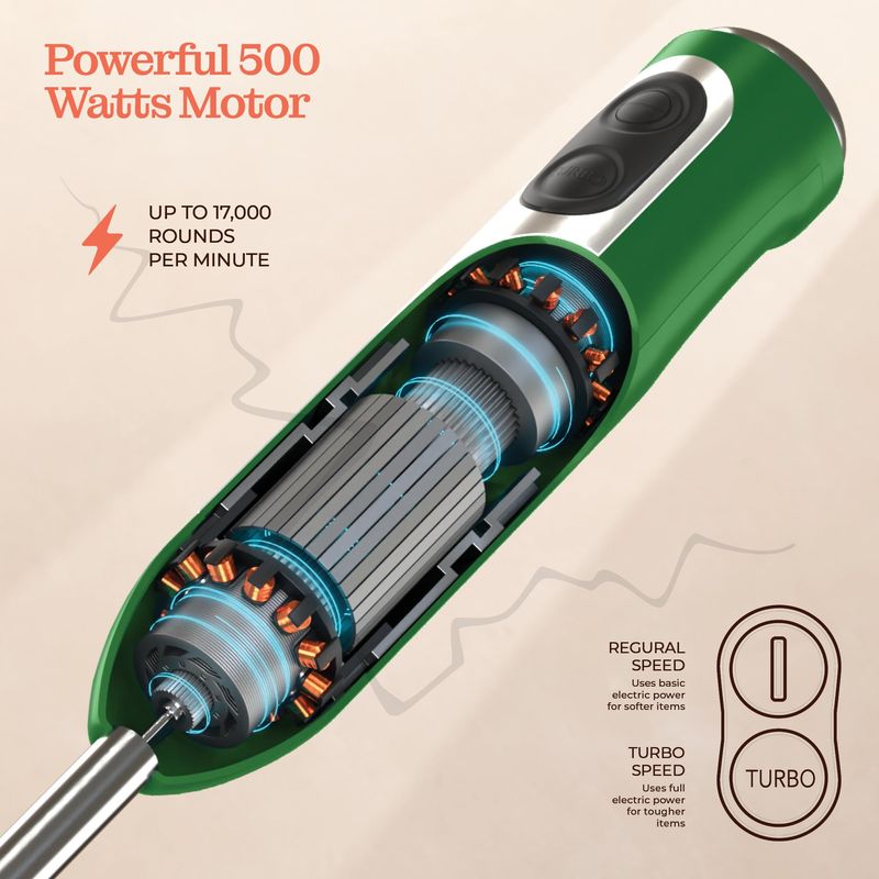 LICUADORA DE INMERSIóN MULTIUSO, BATIDORA DE MANO CON POTENTE MOTOR DE COBRE DE 800 W, ALTA VELOCIDAD, MODO TURBO; CUCHILLAS DE ACERO INOXIDABLE 3 EN 1, BATIDOR, VASO CON MARCAS DE MEDICIóN Y PICADOR