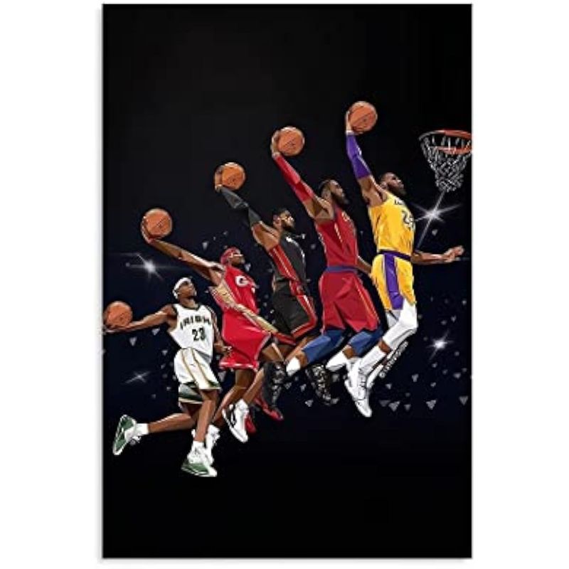 HOGARBAZARDECORACIONLIHONK Pósteres de baloncesto de James de 12 x 18 pulgadas, sin marco, arte de pared de baloncesto