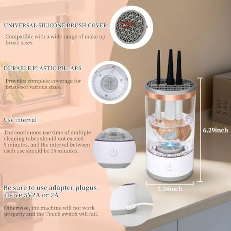 BELLEZA Y SALUDBELLEZA Y CUIDADO CORPORALMAQUILLAJELimpiador de brochas de maquillaje eléctrico multifunción - Automático, ahorro de energía, limpiador