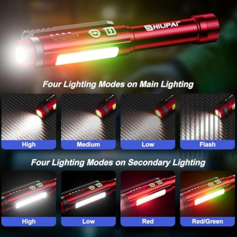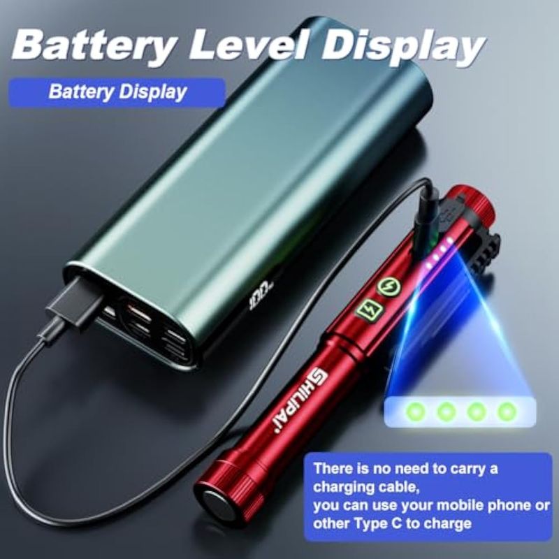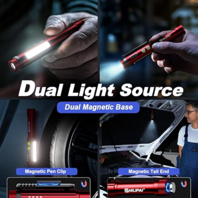 LINTERNA EDC DE BOLSILLO, ULTRALIGERA, IMPERMEABLE, LUZ DE PLUMA RECARGABLE CON CLIP, BASE MAGNéTICA BIDIRECCIONAL - ROJO