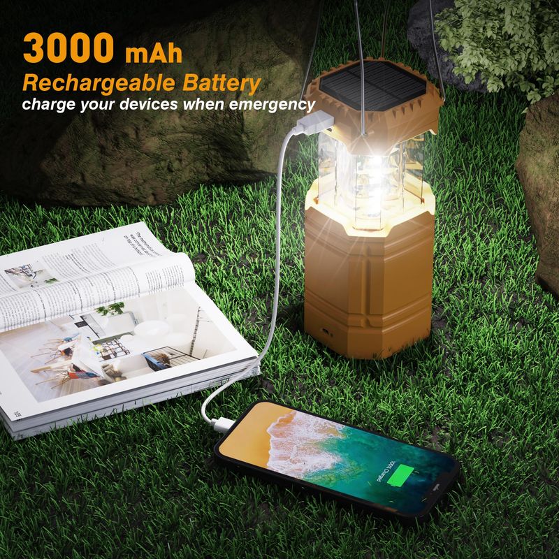 Linterna solar de camping con manivela de mano de gran capacidad de 3000, linterna LED ultra