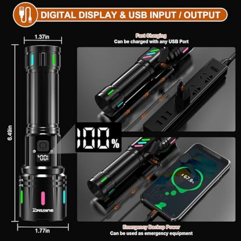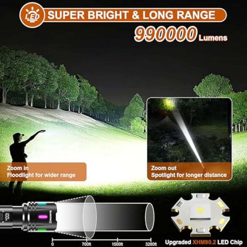 Linternas LED de alto lúmenes recargables, 980000 lúmenes XHM90.2 linterna súper brillante, luz de