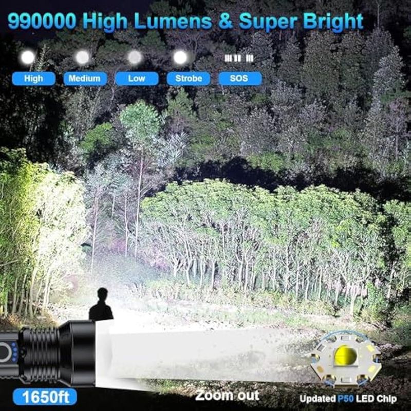 JARDÍNCAMPINGLINTERNASLinternas recargables de 10000 lúmenes altos, linterna LED impermeable para emergencias, linterna de