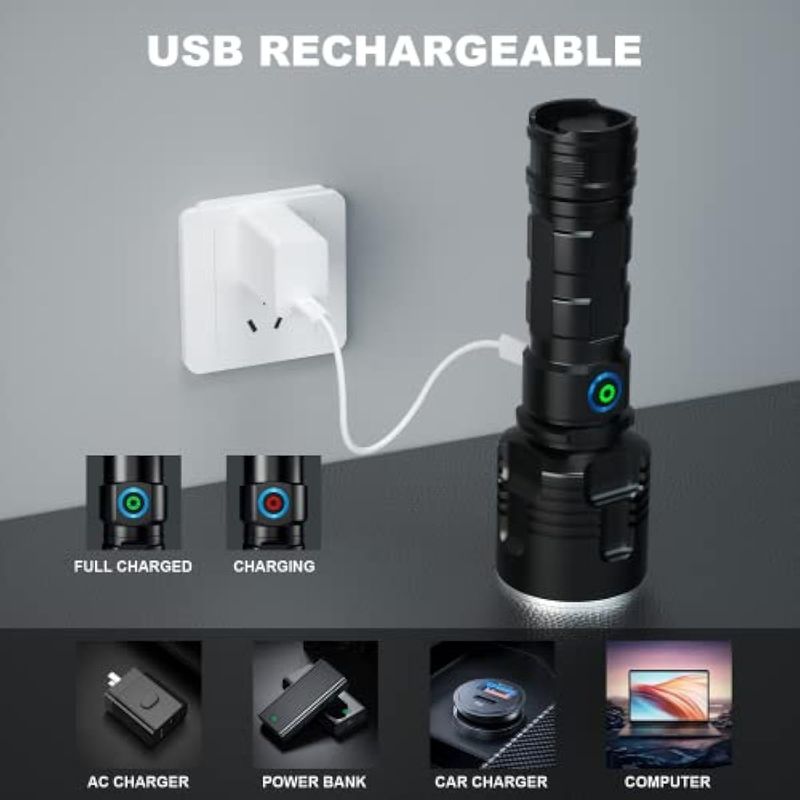 JARDÍNCAMPINGLINTERNASLinternas recargables de 990,000 lúmenes altos, paquete de 2, 12 horas de potente luz LED con