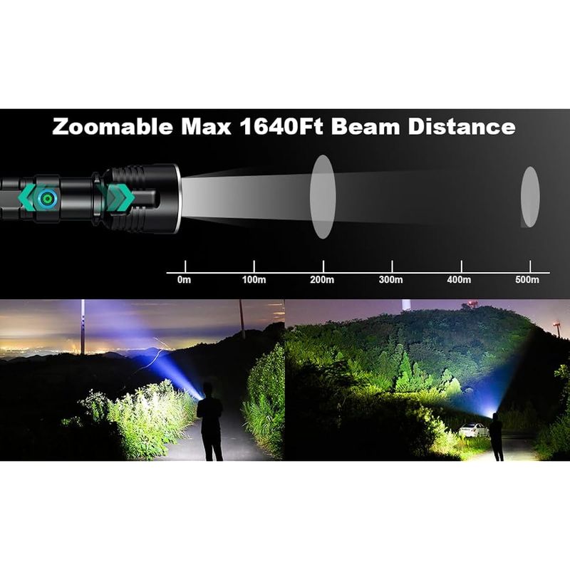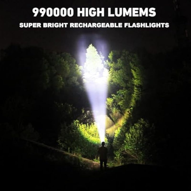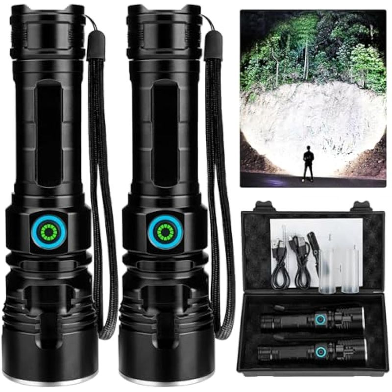 Linternas recargables de 990,000 lúmenes altos, paquete de 2, 12 horas de potente luz LED con