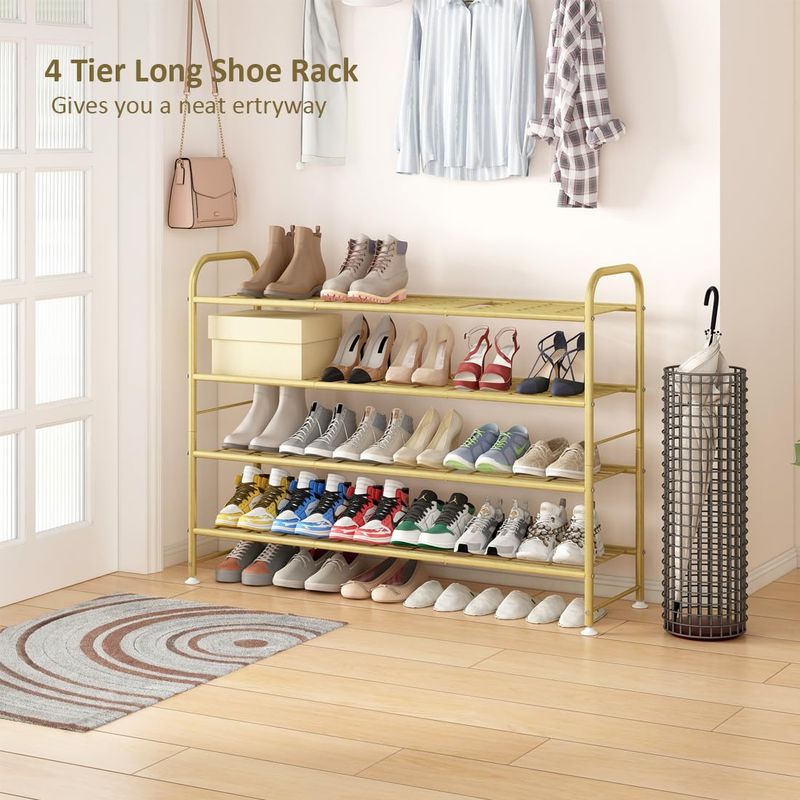 Gran capacidad: este zapatero largo de 3 niveles puede almacenar fácilmente hasta 20-24 pares de zapatos para mujeres, hombres y niños, como pantuflas, sandalias, tacones altos, tenis, botas, etc. La parte inferior elevada crea espacio de almacenamiento adicional para más zapatos, ideal como zapatero para armario.
