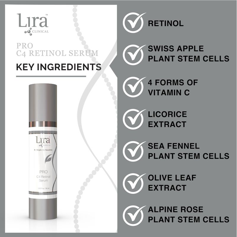 Lira Clinical PRO C4 - Suero de retinol, suero facial con células madre vegetales, suero iluminador