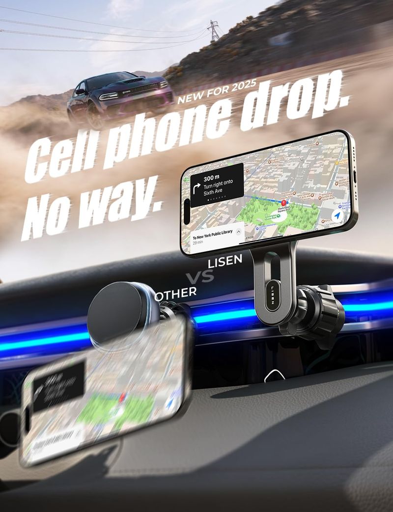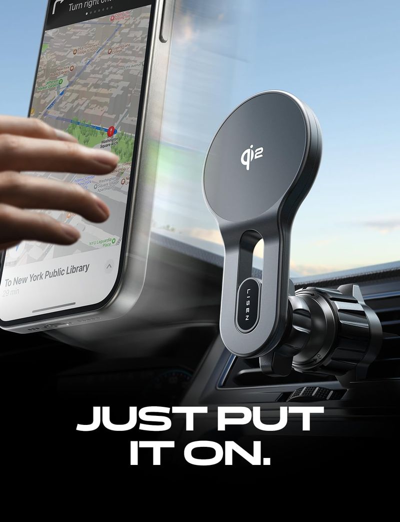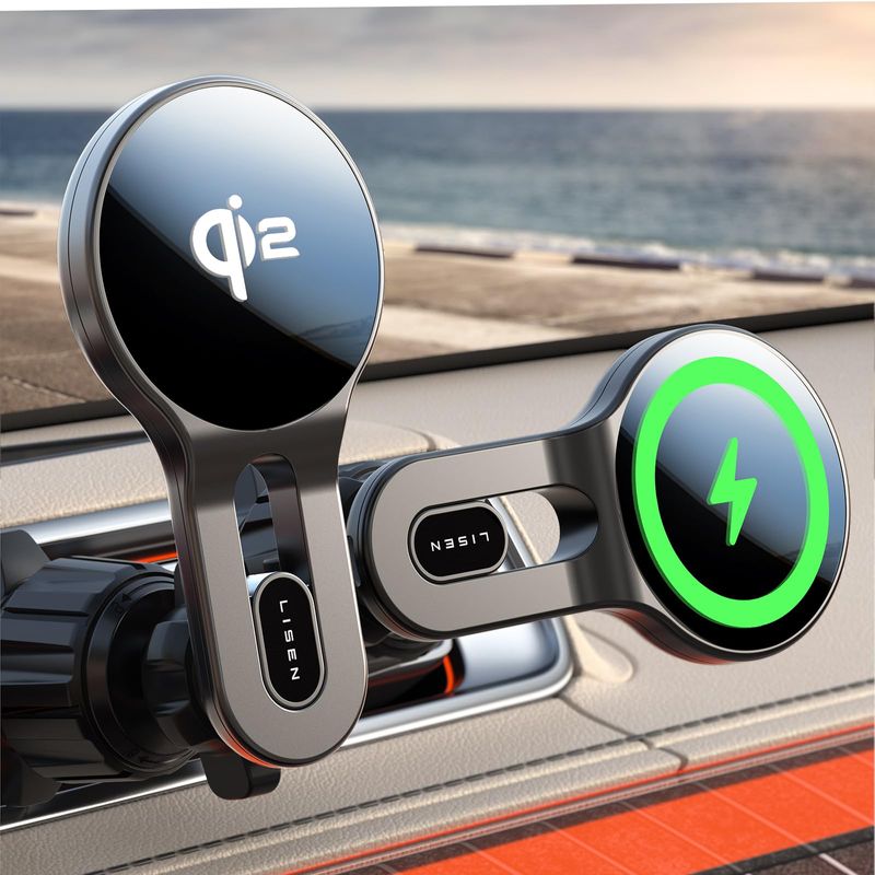 LISEN Cargador de coche MagSafe [15W PRO Charging] iPhone Samsung Cargador de coche inalámbrico