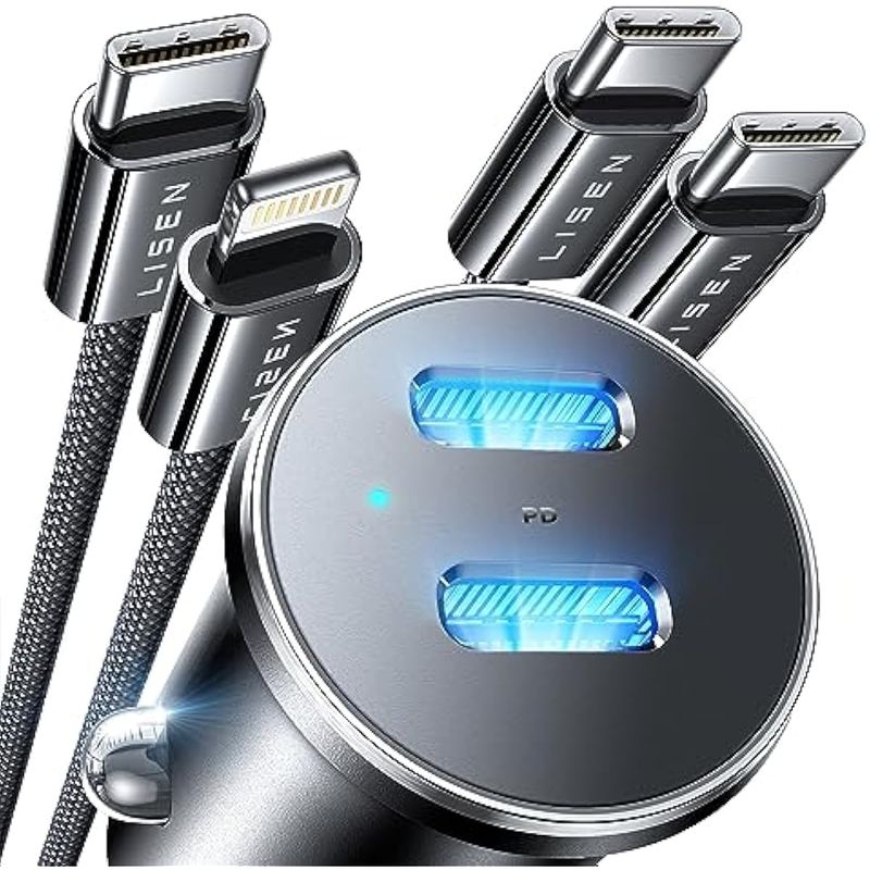 ?Paquete de 2 cables adicionales adecuados para todos tus dispositivos: el adaptador de cargador de automóvil LISEN viene con un cable USB C a USB C de 60 W y un cable USB C a Lightning de 27 W para ti que soporta carga súper rápida para tu Samsung Galaxy S23 S22 S21 Ultra S20Note 20 10 A52 A71 A51 A10E S9, Google Nexo US 6P Pixel 5 4xl 3xl 2xl 3a 4 4a, LG, iPhone 15 15 Plus 15 Pro Max 14 Pro Max 14 Plus 14 Plus 14 iPhone 13 Pro Max iPhone 12 11 XR XS, iPad Pro Air Mini, Macbook air, compatible con autos de 1224V, camiones, RV, etc.